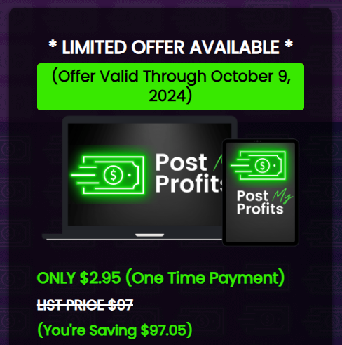 When it comes to the pricing of Post My Profits, I’m not a fan of how they’ve structured it. The whole thing feels designed to push you into making a fast decision, and not in a good way.